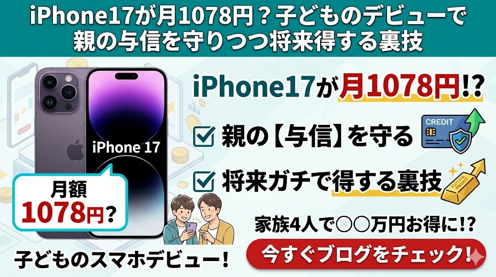 iPhone17が月1078円?子どものデビューで親の与信を守りつつ将来得する裏技