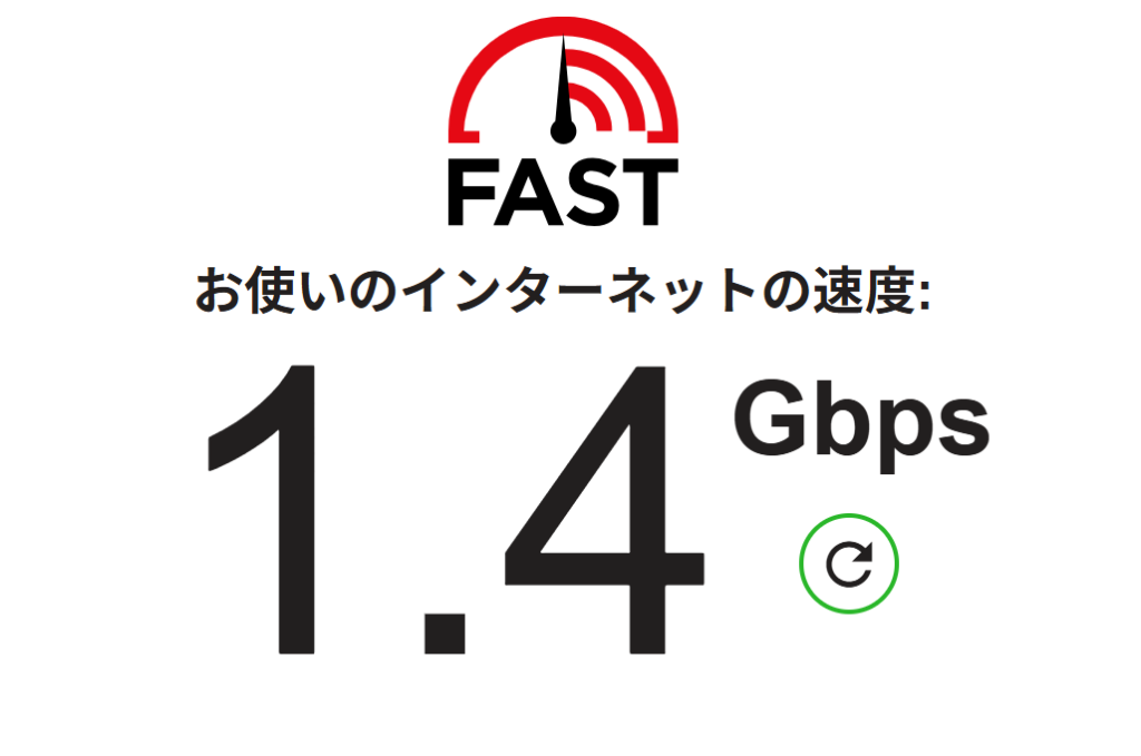 ↑親機を置いている2階での無線速度。最新PCなら無線でも1.4Gbpsを叩き出します。